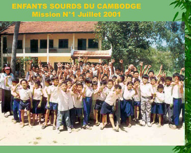 Initiée par Jean-Paul BERAHA et Michel BRE et composée d’une équipe de 9 personnes, elle se déroule en juillet 2001. 76 enfants, des écoles de Phnom Penh, Siem Reap et Battambang, ont été sélectionnés par les enseignants de Krousar Thmey en fonction de leur âge et de leurs aptitudes. La fabrication d’embouts auriculaires provisoires a permis de les appareiller dès la première mission.