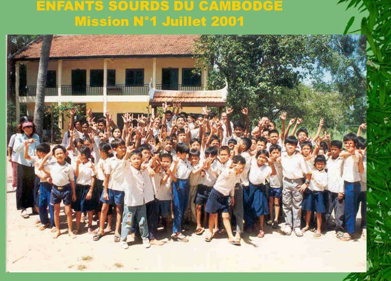 Une école à Kampong Cham et une classe intégrée à Sihanoukville accueillent depuis la rentrée scolaire des enfants sourds.En mars 2003 l’équipe d’ESC teste ces enfants et effectue les prises d’empreintes.Après discussion avec Benoît DUCHATEAU-ARMINJON (dit Benito), président fondateur de Krousar Thmey, l’équipe décide de prendre en charge les enfants de Kampong Cham au même titre que ceux de Phnom Penh, Siem Reap et Battambang. Dans toutes ces écoles, le directeur ainsi que le personnel enseignant assurent un réel suivi des enfants et de leur appareillage. Malheureusement ces conditions ne sont pas réunies, pour différentes raisons, dans l’école de Sihanoukville.